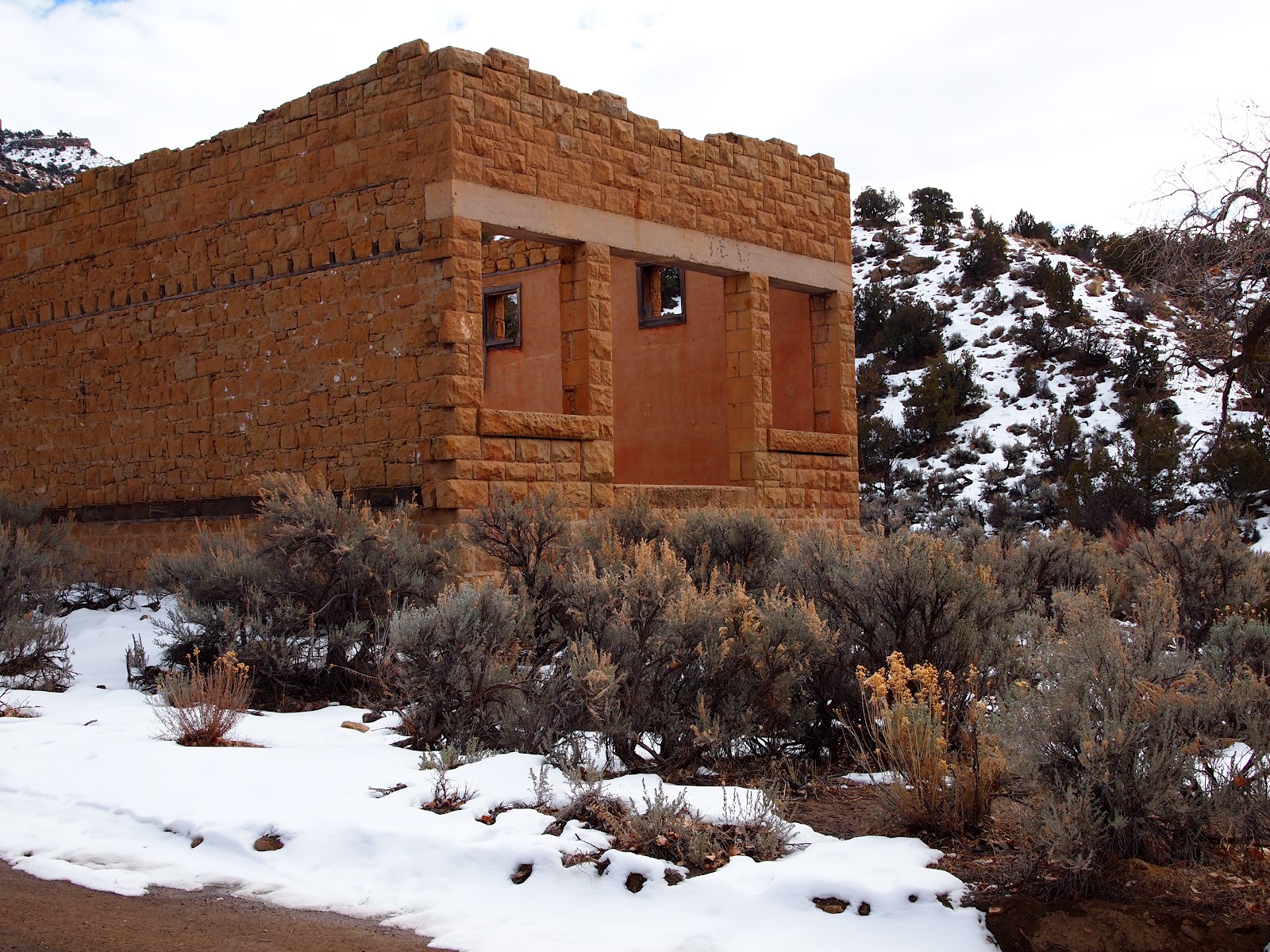 We then continued up the canyon to an old coal mining ghost town named Sego. There were very few buildings that were still standing.....well...I should say walls still standing. The first building is an old general store. We could see where the floor used to be with the storage area underneath. There were also some dugout homes, some obviously nicer and bigger than others. And....there was an old car. I couldn't find the make or model, but figured it might be from the 40's. In any case, it is old and does not run anymore.